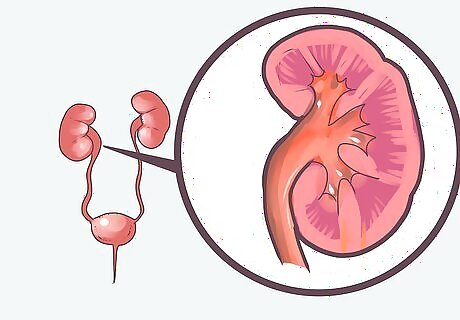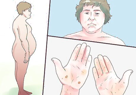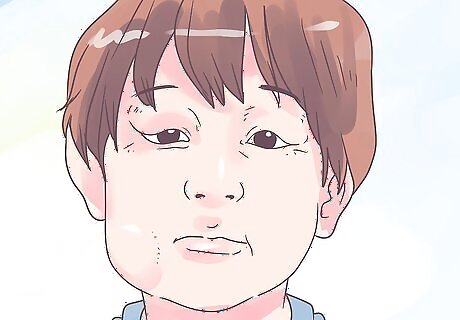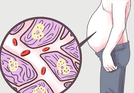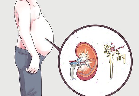 Expect swelling. Edema, the swelling in various parts of the body due to excess water accumulation, is the initial symptom of nephrotic syndrome in about 95% of the patients. Common places for this extra fluid include the face (around the eyes and particularly in the morning after lying in bed all night), the legs (particularly the lower legs and after being upright during the day), within the abdominal cavity (where there is lots of space for it to accumulate), and in the genitalia. It may be mild or sufficiently severe to cause a great deal of discomfort. As blood levels of proteins decrease, a portion of water contained in the blood moves out of the blood vessel and into surrounding tissue.