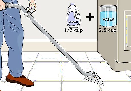 Sanitize the area. Since this disease can be contracted by dogs, cats, rabbits, and humans, you need to sanitize the area. Use a 1:10 bleach solution to clean the area. If you can’t bleach the area, like carpets, rugs, or upholstery, steam clean the area. To make the bleach solution, place ¼ cup of bleach in 2 ¼ cups of water. It will take less than a minute for the bleach to kill the organisms. You can also use a 70 percent ethanol solution to disinfect.