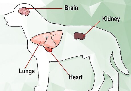 Recognize the symptoms. In puppies, symptoms appear when they are around three weeks old. The symptoms include stunted growth, poor coat, inability to thrive, kidney failure, and neurological complications. Infected adult dogs have the same symptoms that puppies do, but they also have a few additional ones, including: brain abnormalities, aggressive behavior, seizures, and blindness.