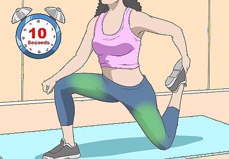 Stretch your quadriceps muscles. If your doctor recommends that you exercise as part of a rehabilitation program, you'll probably need to stretch the quadriceps muscles in front of your thighs. Try one of these stretches: Do the hip flexor stretch by putting one knee on the ground and the other foot in front so the knee is bent. Push your hips forward while you keep your back straight. Hold your ankle and pull the leg behind you toward your back. You should feel a gentle stretching in your quadriceps muscles. Hold the stretch for 10 seconds and release it.