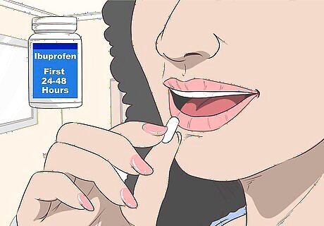 Take ibuprofen to reduce pain and inflammation. If your knee has swollen or you feel sharp pain, take ibuprofen for the first 24 to 48 hours. Anti-inflammatory medication can reduce swelling and relieve the initial pain.