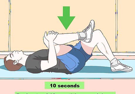 Begin basic strength training. Once your knee no longer feels painful, start simple exercises to contract and relax your quadriceps. Stand or lay down and pull your knee towards your chest. Hold your knee for 5 seconds before you slowly release it. Do 3 sets of 8 repetitions for each knee. You can eventually work up to holding the knee for 10 seconds. Do 4 sets of 12 repetitions for each knee once you feel comfortable.