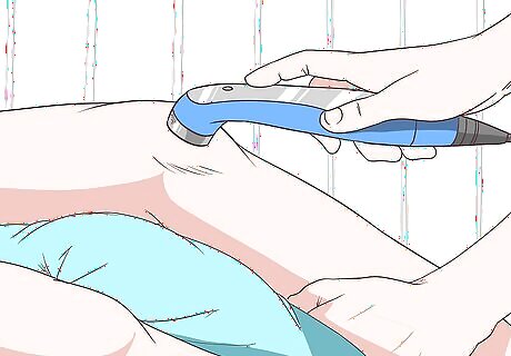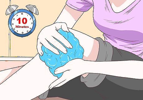 Apply an ice pack while you rest the knee. Press an ice pack or gel pack to your knee to reduce swelling and relive pain. Hold the ice pack over your knee for up to 10 minutes at a time. Do this once every hour until the swelling goes down. If you have chronic jumper's knee, plan on applying an ice pack after exercising.
