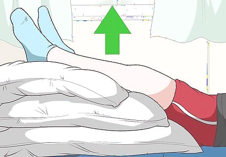 Elevate the knee. If your knee is painful or you're resting it, raise it up. Try stretching out so you can place pillows or cushions underneath your knee. When you elevate your knee, gravity will help move fluid away from the knee, which can reduce swelling.