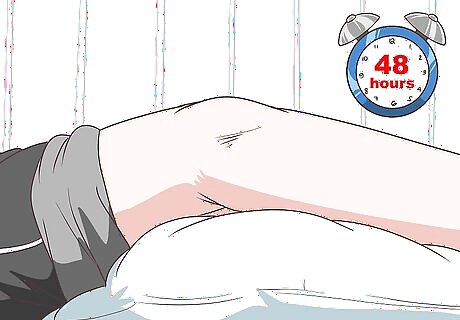 Rest the knee for at least 24 to 48 hours. Begin to rest the knee as soon as you notice pain or swelling. You'll need to stay off of the knee and let it rest for at least a day or two before you begin to use it again. Avoid playing high-impact sports or training while your knee is inflamed. Most cases of jumper's knee will need several weeks or even months of treatment.