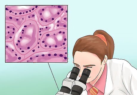 Get a biopsy. Before you can start any kind of treatment for lung cancer, you need to get a biopsy of the lung. A biopsy will let your doctor know that you have cancer and what type of cancer you have. During a biopsy, the doctor will get a small tissue sample of your lung. They can do this through a needle, a tube sent into the lungs, through the chest wall, or through an incision. After they get the tissue sample, they check the sample under a microscope for cancerous cells.