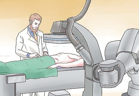 Undergo radiation therapy. Radiation therapy, also called radiotherapy, is a common cancer treatment. During radiation, high-powered x-rays, proton beams, and other radiation are used to stop the growth and destroy cancer cells. Radiation can be done externally by placing the machine over the affected area. It can be done internally by introducing radioactive substances into the body near the cancer through needles, seeds, wires, or catheters. Radiation may be the only treatment used to treat your cancer. Radiation may be used in conjunction with other therapies. For example, you may have radiation before you have surgery to shrink the size of the tumor, or you may have it after surgery to kill any remaining cancer cells. Radiation is also used when cancer spreads to other parts of the body to treat cancer in those areas.