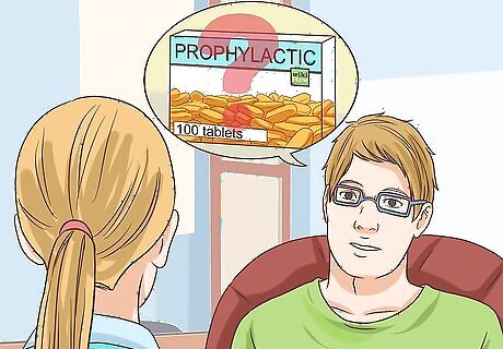 Ask your doctor about prophylactic medicine if you’re around sick people. If someone around you has meningitis, your doctor may recommend that you take antibiotics as a prophylactic, or preventative, measure. This can help keep you from getting the illness, especially if you live with someone who is sick or you have a weakened immune system. Discuss this option with your doctor.