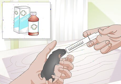 Give your mouse oral ivermectin. If your vet prescribes ivermectin, you will give your mouse 2 treatments by mouth, 10 days apart: give your mouse the first treatment, then give the second one 10 days later. You could also add ivermectin to your mouse’s drinking water, but this would require changing the water every day, which may be time consuming. Oral ivermectin will be a liquid solution that you will administer with a syringe (without the needle). To give your mouse oral ivermectin, pick up your mouse by the base of its tail and place it in the palm of your hand, with its back against your palm. Gently scruff your mouse by the neck, place the syringe of ivermectin in the mouth, and slowly dispense the medication. Ivermectin can be applied directly to your mouse’s anal region with a spray bottle. This may be a little tricky to perform, though, so your vet will probably prescribe the oral formulation.