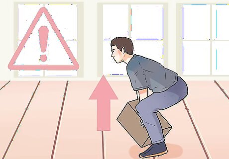 Be careful when lifting heavy objects. If you are about to lift anything, consider the weight you are going to lift. Don’t lift any heavy things that could strain your back or cause more irritation and pain. If you need to lift something heavy, use proper form: bend your knees as if you are sitting down into a chair, and using your hips, let your leg muscles lift instead of your back muscles. Don’t pull heavy things or boxes across the floor; instead, push them slowly. Alert your work or family members of your pain. Ask for "light duty" or help if you need to lift heavy objects on a regular basis.