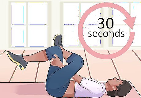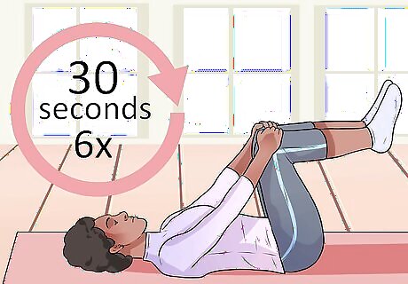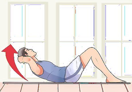 Try curl ups. This exercise is similar to a traditional crunch. It strengthens the abs and the upper rectus to help relieve pressure from the lower back. Begin by laying flat on your back on an exercise mat or carpet. Fold your arms across your chest. Slowly roll and lift your head up off the ground followed by your shoulders. You should feel your entire core become tight and engaged. Hold this position for two to four seconds or as long as you're able. Slowly lower your shoulders and head back down to the starting position. Continue with this exercise until you can complete two sets of 10 curls.
