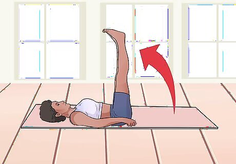 Do lying leg lifts. Leg lifts will help strengthen your lower abdominal muscles and remove the strain from your lower back and sciatic nerve. Start by lying down on the floor on your back either on an exercise mat or on the carpet. Press your lower back down to the floor and pull your bellybutton in toward the floor. Your pelvic alignment is essential to getting this exercise right an not causing further harm. It may be necessary for you to put your hands under your lower back for support, or put a slight bend in your knees. Keeping both legs bent at the knee, slowly raise your left leg off the floor while keeping your knee bent. Hold for five seconds, and return back to the original pose. Then do the same with your other leg. Repeat the alternation five times or as many times as you are able.