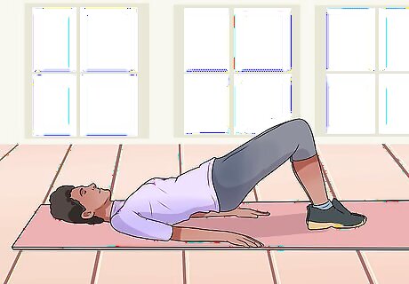 Try bridge exercises. This exercise helps strengthen the back of your legs, buttocks, and lower back. Lay down on the floor on your back with both knees bent and the soles of your feet flat on the floor. Then, push up using your buttocks while your back is straight. Your body should form a straight line declining from your knees to your head. Hold for five seconds to 10, and relax. Repeat this exercise five times if able.