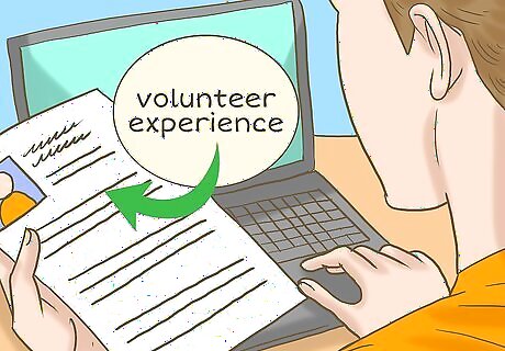 Volunteer at an organization where you can do relevant tasks. Identify organizations where you will be able to use skills you already have and develop new ones that will apply to the type of job you want. Approach finding volunteer work the same way you would look for an internship or a paid job. Tip: Be specific about the tasks that you want to do. Make a list of job duties that interest you the most, then use it to narrow down possible volunteer positions. For example, if you want to work as a community manager, then volunteer at an organization that needs help managing their social media. This will open the pathway to a potential paid job within that organization, or at another organization doing the type of work you are interested in.