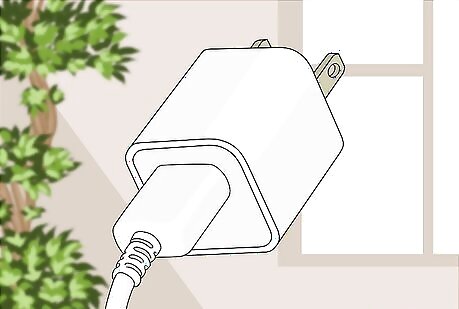 Unplug your charger from its socket. In order to wake up your phone without using the Lock button, you'll need to connect your charger to your phone, then plug your charger (and connected phone) into a power source. If your charger isn't plugged in, skip this step.