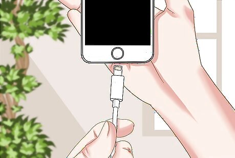 Plug the skinny end of your USB charger into your iPhone. The charging port is on the bottom of your phone.