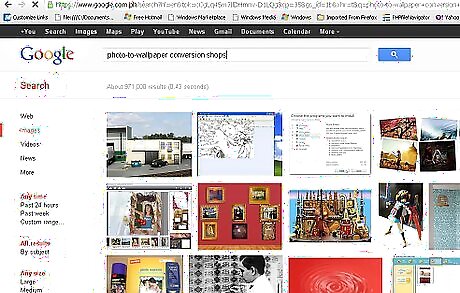 Shop photo wallpaper resources. In addition to the internet (which offers many choices for photo-to-wallpaper conversion), local copy and craft shops may offer this service, so it's advisable to check out both possibilities to see who offers the best deal in your area. Explain clearly what you want done and be sure to give the precise measurements so that they know whether they're up to the task or not. If ordering online, only use a well-reviewed site or ask friends through Twitter, Facebook, etc. for their recommendations. Only order through trusted sites where you can read reviews and even contact previous clients. Ask how the wallpaper will be shipped to you, shipping costs, paper quality, and the overall turnaround time.Turn Your Favorite Photo Into Wallpaper Step 7Bullet1.jpg Consider your hometown copy shop. Not only do many local copy shops offer the service of turning photos into wallpaper, some private mail companies and graphic design firms can help you as well.Turn Your Favorite Photo Into Wallpaper Step 7Bullet2.jpg