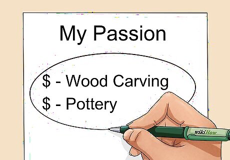 Narrow down exactly what your passion is. If you are considering pursuing your passion, you may know exactly what it is and how it could become a job. But you might also just have a hobby you think is cool and wish you could get paid for it. Take some serious time to reflect on what your passion is and be able to name it specifically. If you have multiple passions that you think could make a good profession, try to think about which one you would want to do every day. You may have a hobby that involves creating something, like pottery or woodworking. Making something to sell is a good example of a passion that can become a profession. Maybe you love to volunteer for breast cancer fundraisers or at a local soup kitchen. You should consider finding work in the nonprofit sector that would allow you to make a difference in causes you care about.