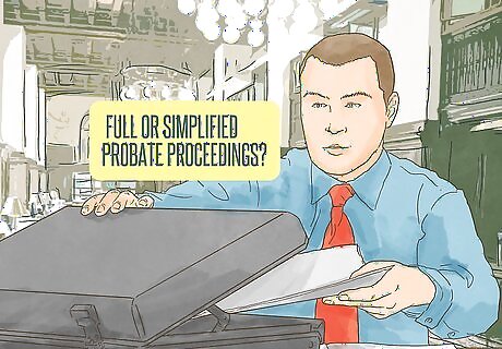 Determine what type of probate proceeding to use. If the property is below a certain value, you may be able to use a more simplified, informal probate proceeding for the ancillary probate. Simplified proceedings can save significant time and money. Each state has its own threshold for simplified probate proceedings. If the property is worth more than that amount, you must go through the full formal probate proceedings. Some states don't allow estates with real property to use the simplified proceedings, in which case you'd have to go through full probate regardless. This is where having a local probate attorney can come in handy, because they'll know immediately whether the property falls below the state's threshold. However, if it turns out the property qualifies for ancillary probate, you typically can complete the process on your own without needing an attorney. You may even be able to mail the forms into the court so you don't have to make a trip out of state.