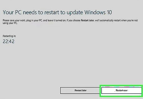 Restart your computer. When the update is finished downloading, click on Restart now on the Windows Update Assistant to finish installing the update. This will immediately restart your computer, and it will take at the minimum 20 minutes to finish updating, and much longer on newer versions.