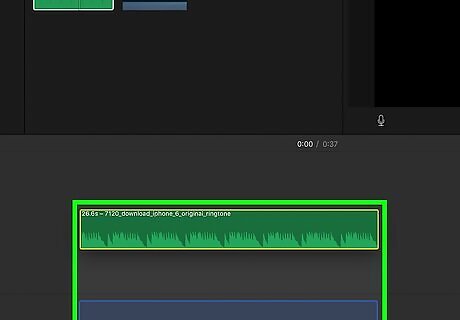 Drag the audio file icon to the bottom of the wide lighter gray box. It's the long box at the bottom of the window. Drag it to the very bottom of the box, then lift your finger to drop it into place.