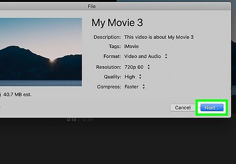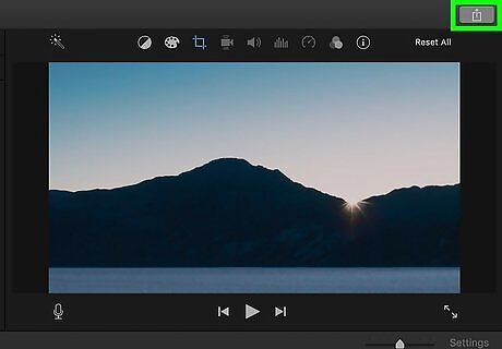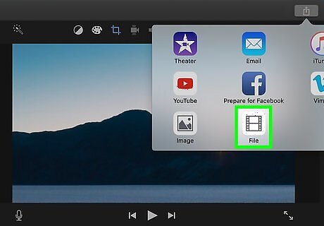 Click the share icon. It's the square with an up-arrow at the top-right corner of iMovie.