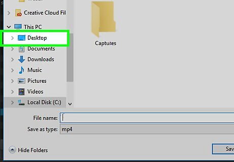 Navigate to the folder where you want to save the file.