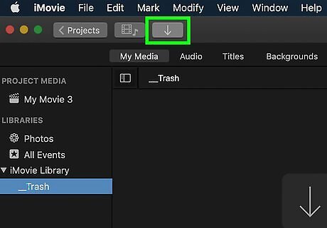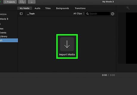 Click Import Media. It's the down-arrow near the top-left corner of iMovie. This opens the file browser.