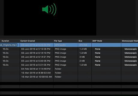 Click the audio file. This displays a preview at the top of the screen.