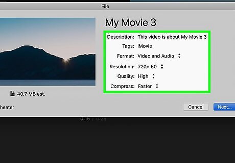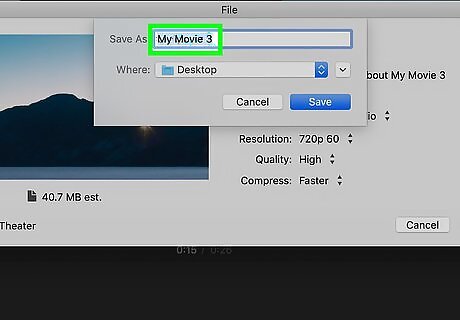 Enter the details for the movie. Click the Resolution drop-down to select a resolution. Since this video is just a single image, it's safe to choose a low resolution here. To select the quality, click the Quality menu, then choose your desired option. The higher the quality, the larger the file.