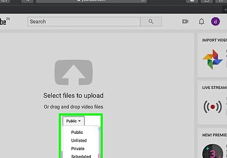 Select a privacy level. Click the menu below the arrow to choose who should be able to see the video (Public, Unlisted, or Private).