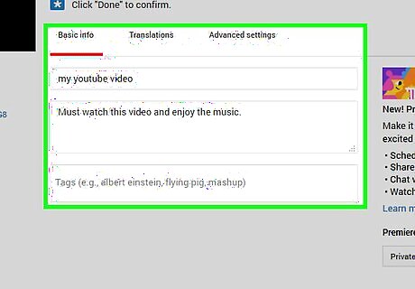 Enter the rest of the video's details. You can type a title, description, and tags into the boxes as necessary. When you're finished, click Done to save your changes.