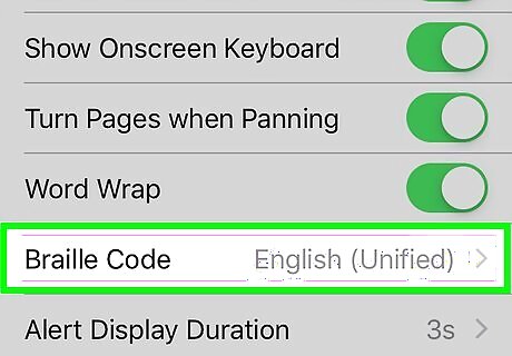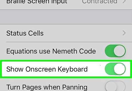 Slide Show Onscreen Keyboard. When enabled, this displays a braille input on the iPhone screen.