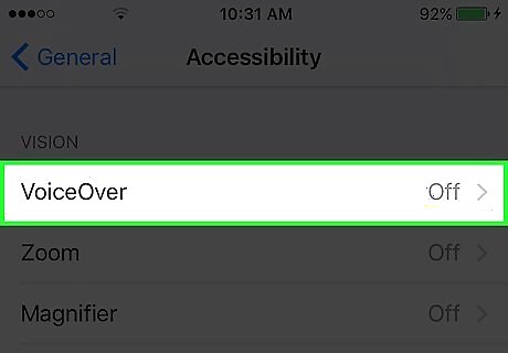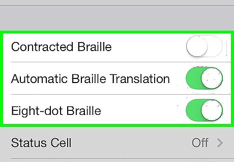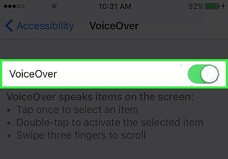 Slide VoiceOver to the On position. This step is optional to change the settings but necessary for most braille display features to function.