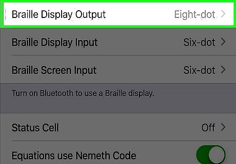 Choose a display input/output. This will change which braille formatting is used on your display. You can choose between six-dot, eight-dot, or contracted braille.