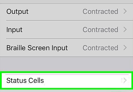 Tap Status Cell. When enabled, VoiceOver will provide more information about what is currently on the screen. You can opt to have the Status Cell display to the Left, Right, or Off. Status cells can be used to describe the formatting or style of text (e.g. bold, italic, etc.).