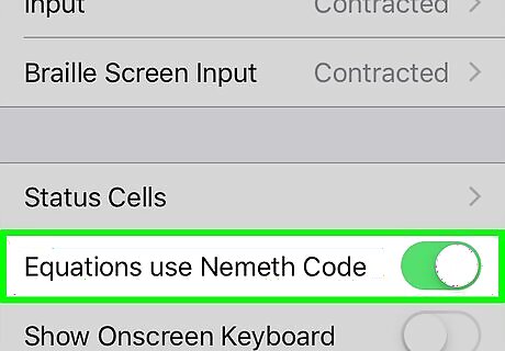 Slide Equations Use Nemeth Code. When enabled, the braille display will use a linear format for mathematical equations on your braille display.