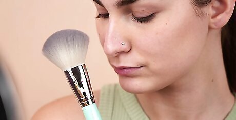 Clean up extra powder using the fan brush. If eye shadow fell under your eyes or you applied too much bronzer, use a large or medium fan brush to brush away the excess. Just swipe the brush under your eyes or where there’s too much powder, and it’ll clean your face right up. Make sure your fan brush is clean each time you use it to avoid clogging your pores.