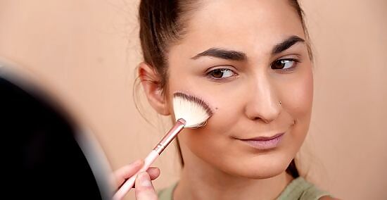 Go with a duo fibre brush for a blend of both synthetic and natural bristles. Whether you're applying a cream or a powder, duo fibre brushes will give you a natural look. They're great for blending and can make your skin look air-brushed.