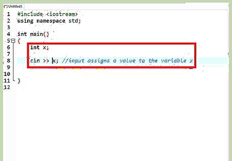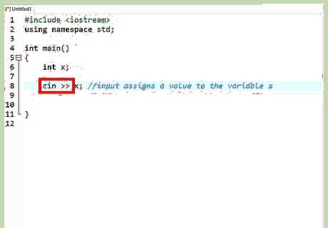 Know the syntax. Cin is used with the extraction operator, which is written as >> (two “greater than” signs). The operator is then followed by a variable where the inputted data is stored. The line must end with a semicolon.