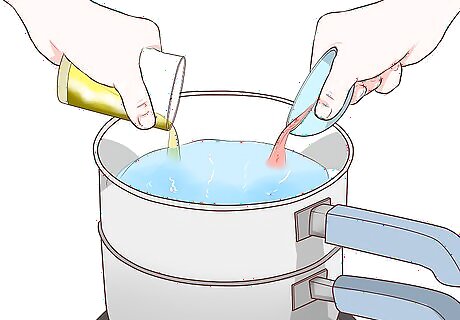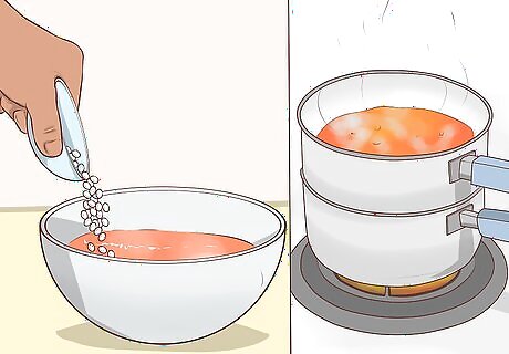 Infuse the oil. Combine your carrier oil and cayenne pepper in the inside of your double boiler (or glass/metal bowl). Heat water in your double boiler (or pot on the stove) to boiling, then reduce heat to low. Insert the container with your oil-cayenne mixture into the warm water, and allow it to steep on low for one hour. This is referred to as a “warm bath.”