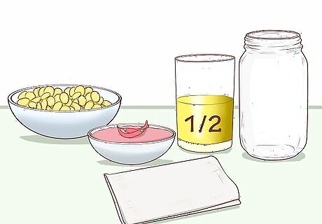 Gather supplies. If you prefer a more DIY approach, you can create a cayenne salve at home. The process is pretty simple, although it does take some time. To begin, you will need: 4 Tbs. ground cayenne pepper, 1/2 cup of oil (olive, coconut, grapeseed, jojoba, or a mix of these), cheesecloth, beeswax pellets, and a glass jar. You will also need a double boiler (or a glass/metal bowl in a pot of warm water on the stove). This recipe will make about 4 oz.