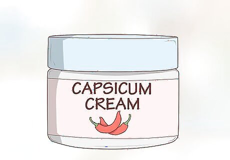 Purchase capsicum cream. Capsicum cream is a topical ointment that can be purchased at most pharmacies or online. These creams contains the powerful analgesic capsaicin, and can be used to relive back pain, neck pain, or pain in your joints.