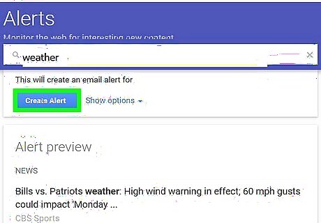Search for the topic you would like to receive alerts for. As soon as you begin typing, a sample of your first Google alert will appear. If you are not getting the results you expected, you can change your search words to get different search results. For example, if you're a tech enthusiast interested in articles relating to home tech, you'd create alerts for "smart home tech", "home assistants", and "home automation."