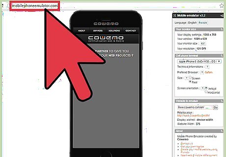 Test mobile device screens using desktop software. There are a number of free web applications that allow you to emulate mobile devices to test website aesthetics and functionality. Using these tools is as easy as selecting the desired test device, then entering to target website to preview. Most will include tools for variables like screen orientation, pixel density, or even browser selection. A few popular examples are: Chrome Device Mode Emulator mobilephoneemulator.com screenfly (a subset of quirktools) mobiletest.me (paid membership)