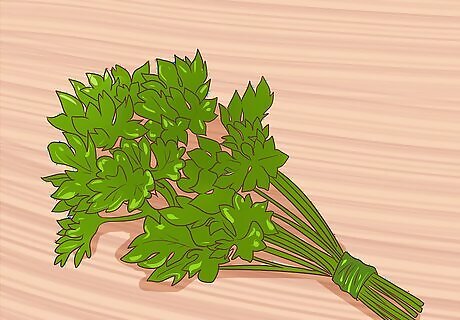 Try parsley. Chewing on a piece of parsley can help freshen your breath. Oftentimes found on your plate with your meal, try chewing on it after you’ve finished eating. Parsley has high levels of chlorophyll found in it, which is a compound known to have anti-bacterial properties, which help fight bacteria that contributes to bad breath. Try this quick process to get rid of bad breath: Dip a handful of fresh parsley leaves in vinegar and then chew them thoroughly for a minute or two. You can repeat this as often as necessary to freshen your breath.