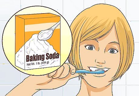 Brush your teeth with baking soda. Baking soda has the ability to balance the pH levels in your mouth, which makes it hard for bacteria to fester and grow in your mouth. It can also remove strains on your teeth. While it’s a powerful tool to alleviate the effects of bad breath, use sparingly as it can cause corrosion of your teeth. You can brush your teeth with baking soda after you first brush using your normal toothpaste. You can also try using toothpaste with baking soda as an ingredient so you won’t have to deal with the direct harsh effects of the baking soda. You can also use it as a mouth rinse by dissolving it in a glass of warm water and gargling. Try using it several times a day.