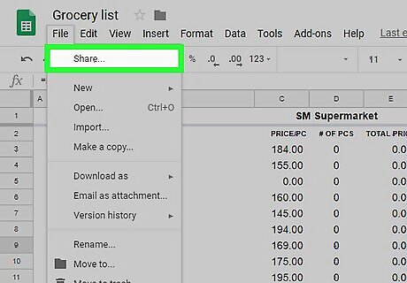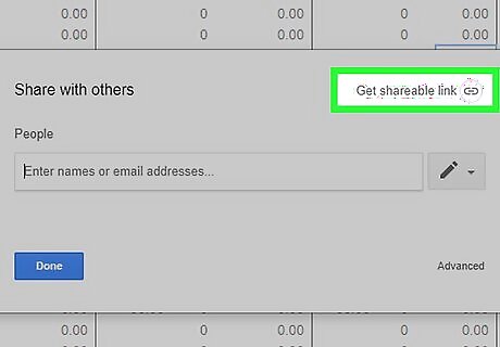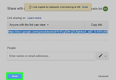Click Get shareable link. A link to the spreadsheet is now copied to the clipboard.
