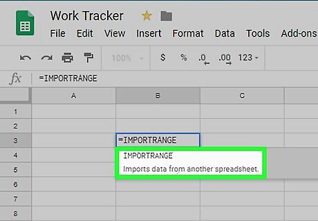 Type =IMPORTRANGE. A list of matching functions will appear.