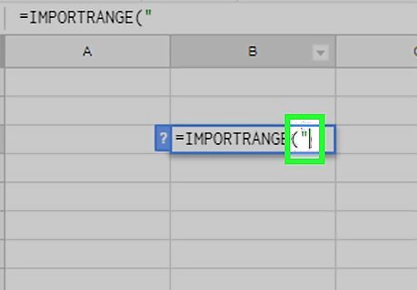 Click IMPORTRANGE. The cell now reads =IMPORTRANGE(.